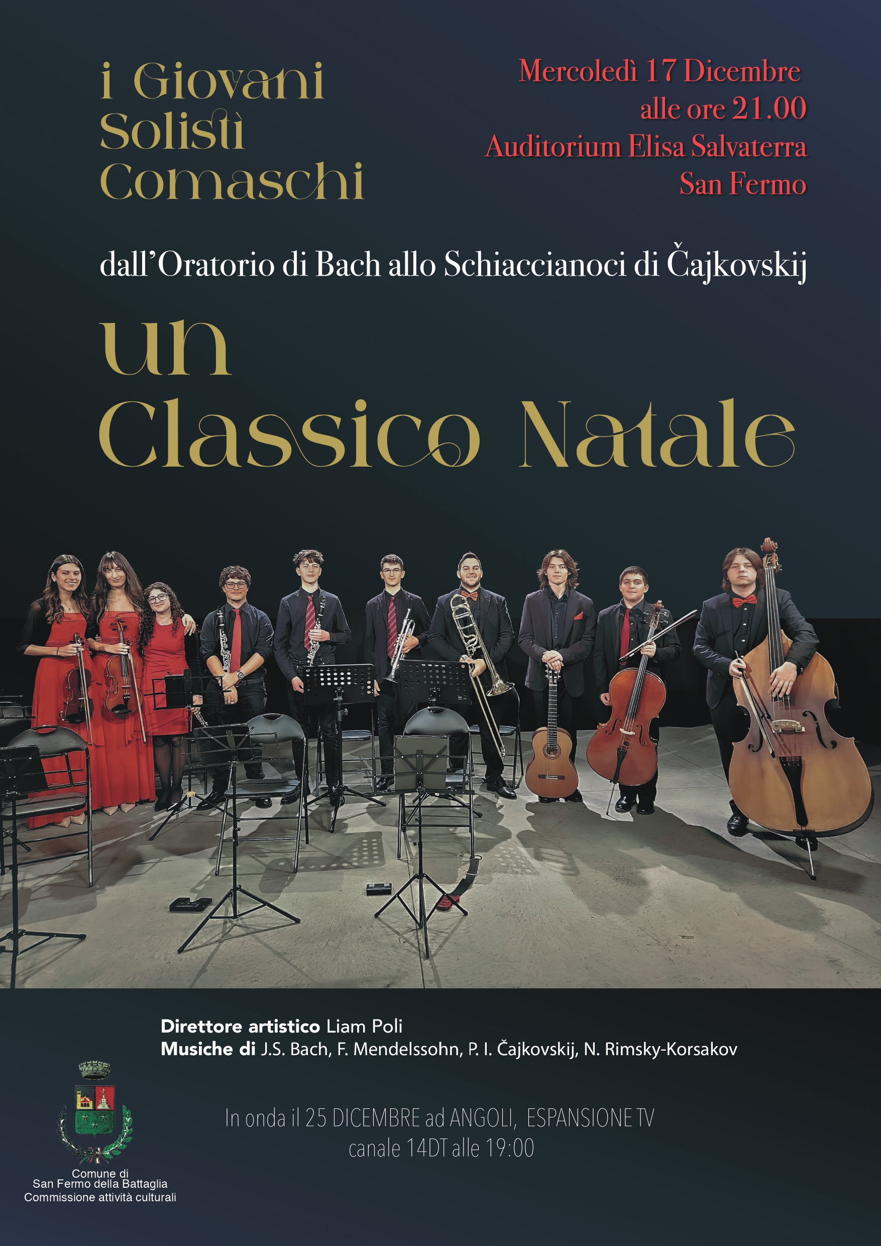 Dopo “Un’estate in Do Maggiore” l’orchestra dei Giovani Solisti Comaschi torna all’Auditorium comunale “Elisa Salvaterra” in loc. Cavallasca con un concerto natalizio. Mercoledì 17 dicembre alle 21 l’orchestra giovanile fondata lo scorso anno a San Fermo e sostenuta dal Comune attraverso la Commissione attività culturali proporrà dall’Oratorio di Bach allo Schiaccianoci di Čajkovskij, musiche di Bach, Mendelssohn, Čajkovskij e Rimsky-Korsakov.