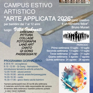 Il laboratorio inizierà sabato 12 aprile, sempre dalle 15.30 alle 17, sempre a Villa Somaini. Le altre date sono: 10, 24 maggio e 7 giugno.
